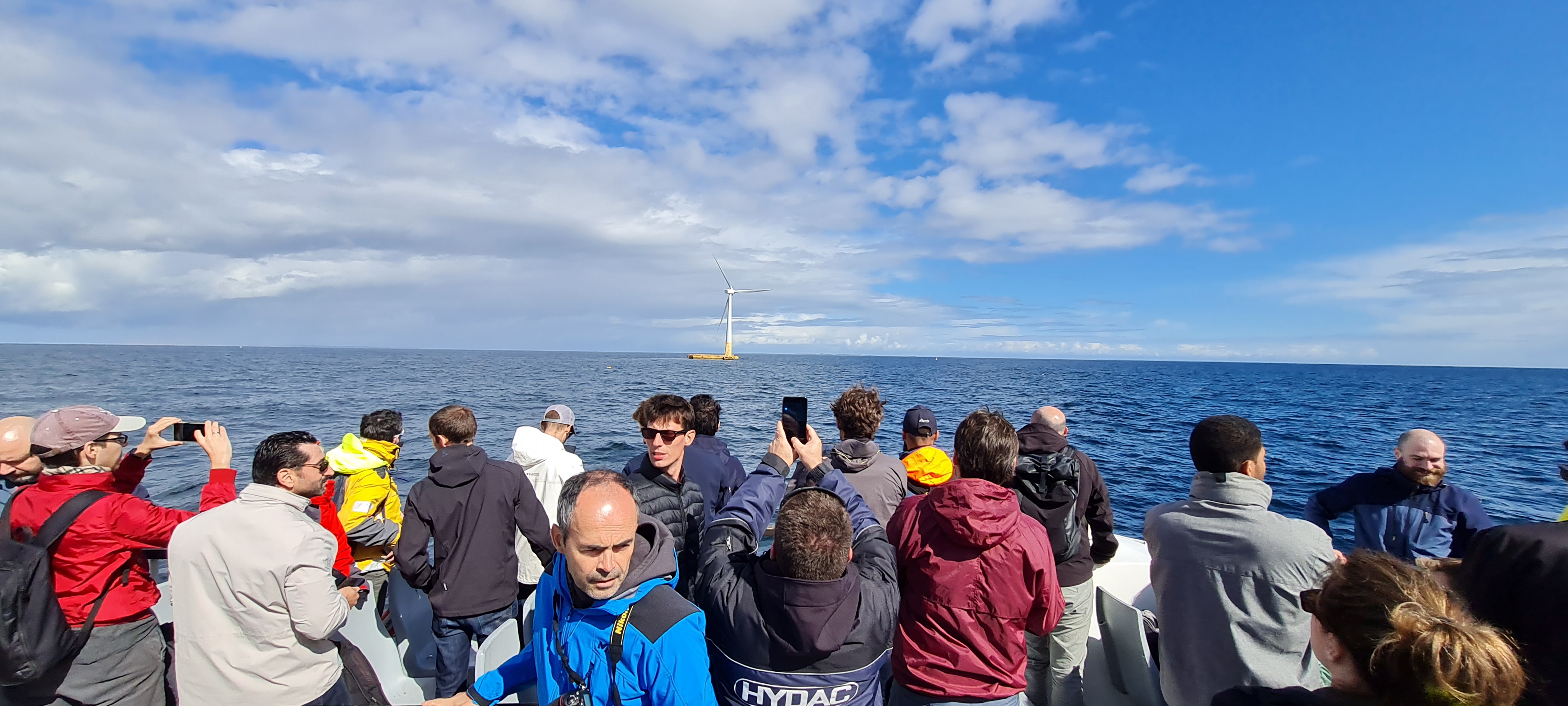 There was a lot of excitement on Day 2 about the offshore visit by boat, with the SEM-REV team to their test site just of Le Croisic on France’s Atlantic coast. The delegation departed from Nantes by bus to Le Croisic, from there a boat trip brought everyone up close to the FLOATGEN floating wind turbine currently deployed in the SEM-REV site and to the near-by Saint Nazaire offshore wind farm.