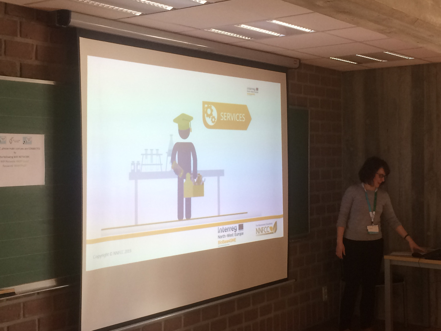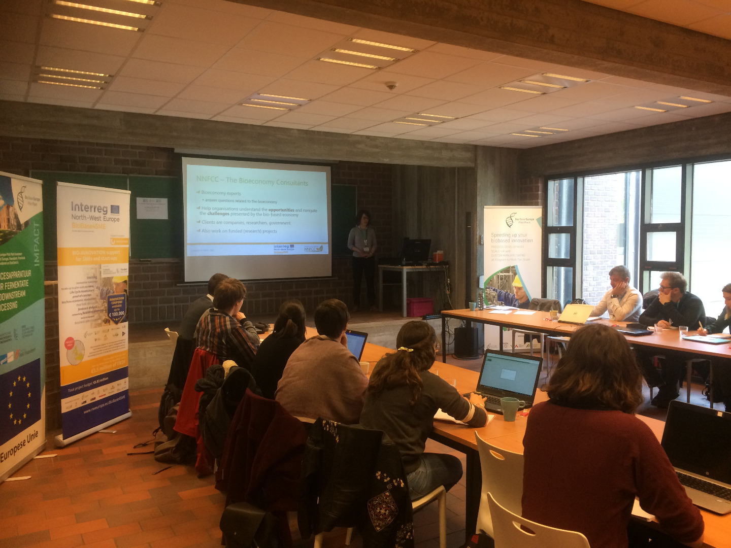 The participants were welcomed by the BioBase4SME Coordinator Tanja Meyer (Bio Base Europe Pilot Plant) and the bio-innovation agent Sophie Dobbelaere (Flanders Biobased Valley) at the facilities of BBEPP in Ghent, Belgium. The masterclass was provided by Lucy Montgomery, Senior Consultant at NNFCC, UK. NNFCC provides Bioeconomy consultants that help organisations to understand the opportunities and navigate the challenges presented by the biobased economy.