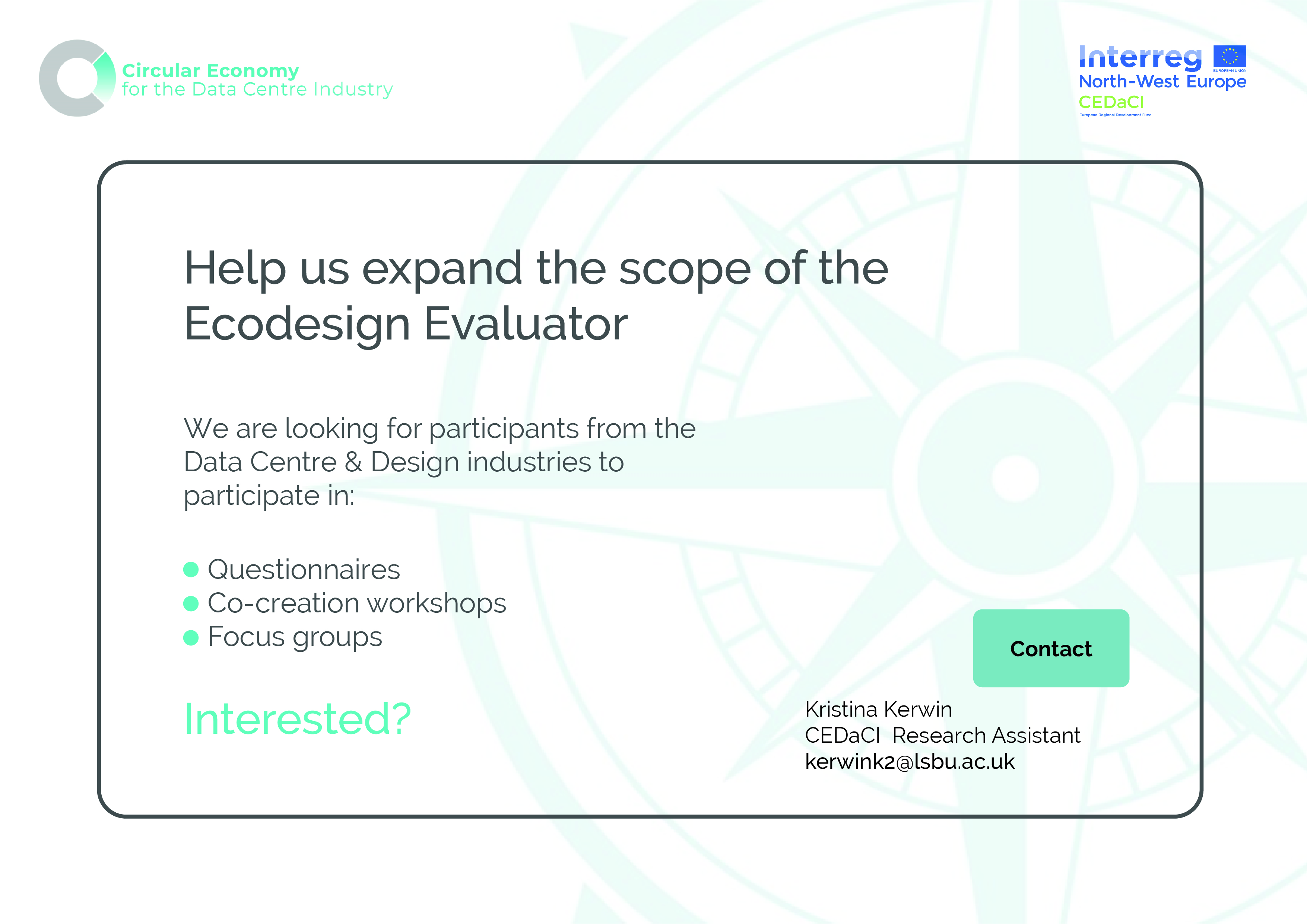 Would you like to take part in a research study titled “How can the design of the data centre equipment be supported in a transition from a linear to a circular economy?” This is being undertaken to support further development of the Design Evaluator framework and assess whether the tool has the capacity to assist designers during the design stage.