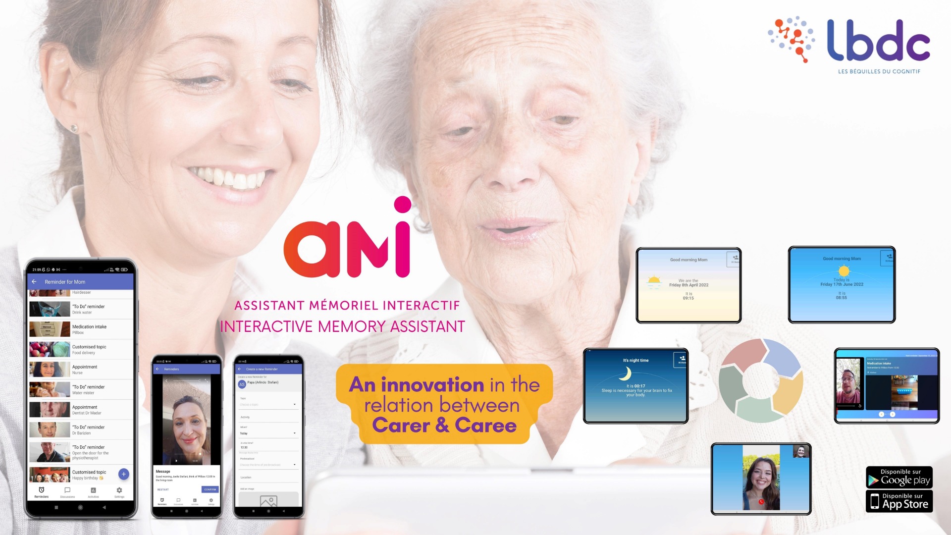 The AMI® Solution for "Interactive Memory Assistant" is an innovation in the Carer-Caree’s relationship allowing the organization of the daily life of the Caree by the Carer and a simplified communication tool adapted to people affected by an illness, an accident, a disability, or an advanced age.