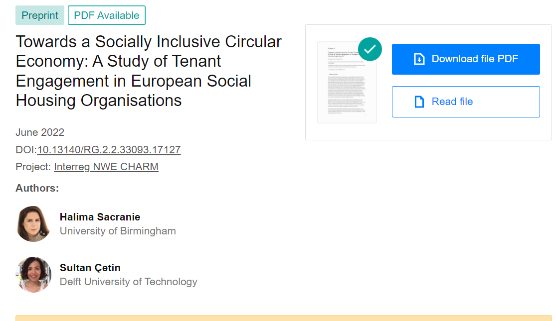 Through case studies of four circular social housing projects in the Netherlands, France, Belgium and the UK respectively, this paper addresses the missing social aspect of Circular Economy (CE) by exploring the role of tenants and tenant engagement in circular social housing.