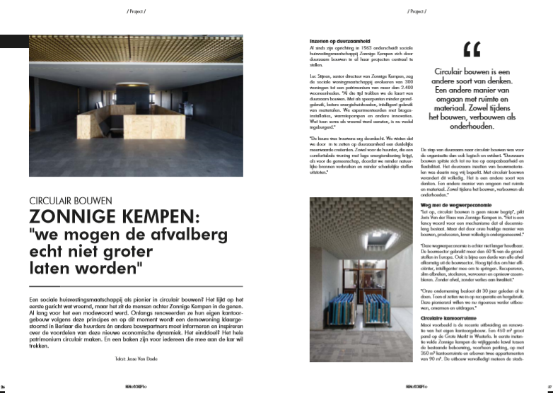 Recently, they renovated their own office building according to the circular principles and a demo house is currently being prepared in Berlaar (Belgium) to inform and inspire tenants and other construction partners about the benefits of this new economic dynamic.
