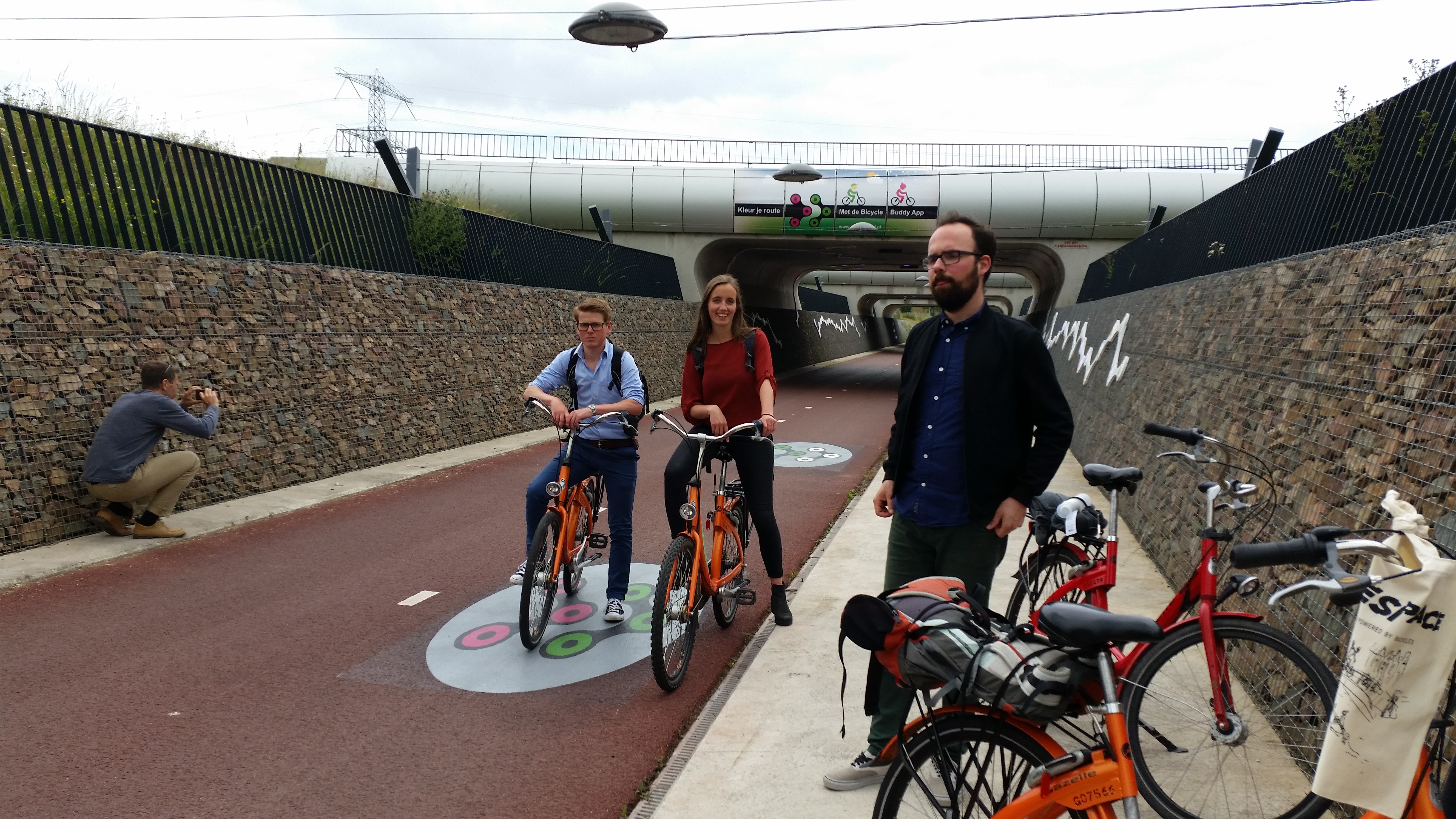 On Tuesday 13th of June, after the opening ceremony of the Velo-city 2017 conference, King Willem-Alexander of the Netherlands visited the CHIPS Exhibition stand at Velo-city, notice the CHIPS video playing in the background! Afterwards a CHIPS Partner Meeting was organized, including a site visit of the Rijnwaalpad, with the CHIPS partners cycling from Arnhem to Nijmegen. During that visit there was also the official opening of the Mobility Hub along the Rijnwaalpad by CHIPS Partner Frank Eggen from the Province of Gelderland.