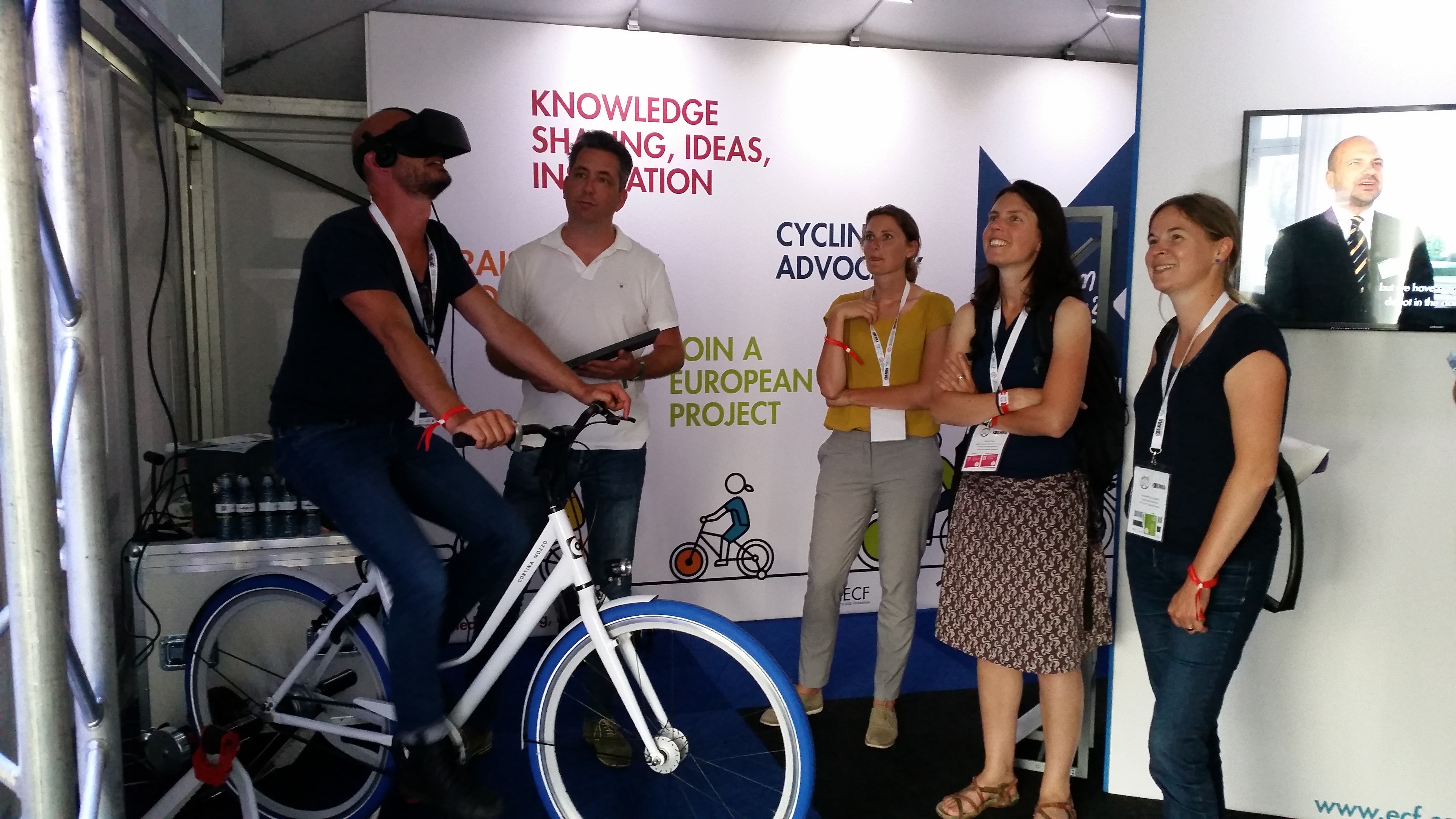 On Wednesday 14th of June, CHIPS Project Manager Magalie Van Lishout presented the CHIPS project at a speed date on European Funding for Cycling. The CHIPS Partners had on this day also their first opportunity to try out the Virtual Reality Fietssimulator (Cyclespex) at the CHIPS Exhibition stand which was very popular and attracted a lot of visitors during the Exhibition. The CHIPS Exhibition stand also featured a large print out of the Potential Cycle Highways Map which equally generated a lot of interest.