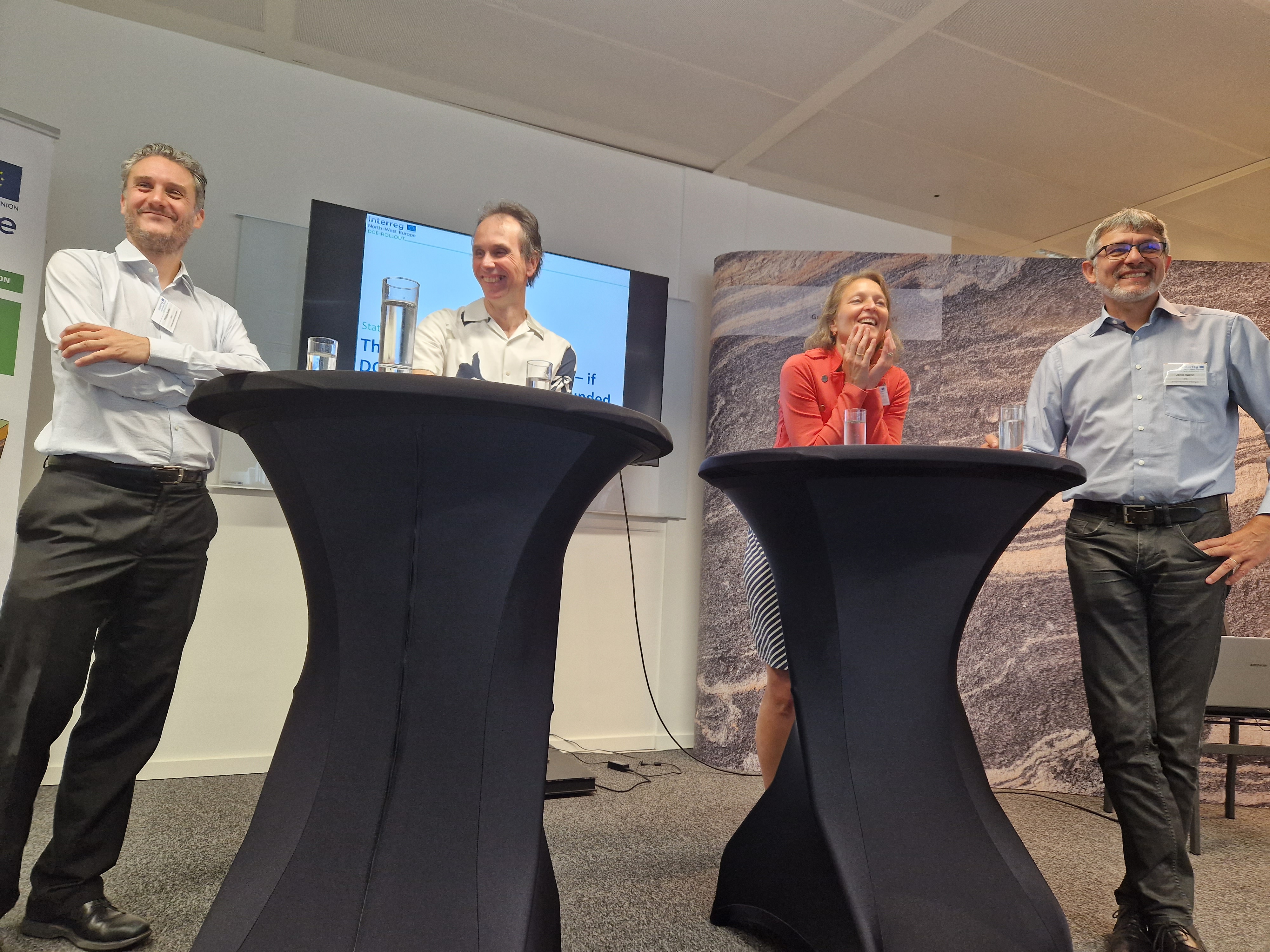 In a panel discussion, the results were put in the frame of the current European trends in energy transition and innovation schemes. At the panel took part Philippe Dumas, EGEC Secretary-General, Eveline Rosendaal, Head of Business Development at EBN, Janos Szanyi, Coordinator of the Panel of Experts of Geothermal Energy EFG, and Ben Laenen, Research Coordinator Geothermal Energy at VITO. Moderator was Timme van Melle, EBN.