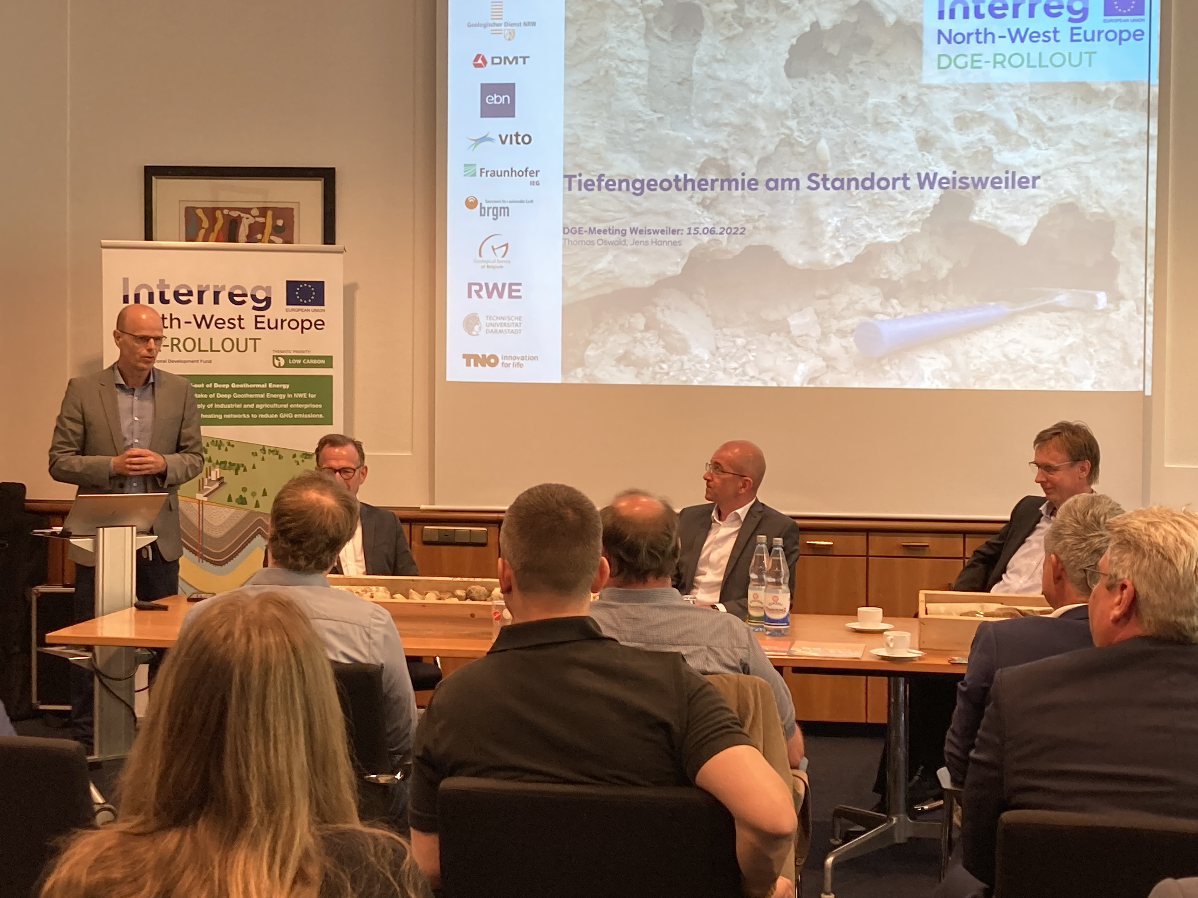 The project's exploratory well will be drilled in Weisweiler over the next few months. The rock properties at a depth of one kilometer are to be explored in this way. The partners have informed the local representatives of administration, politics, associations, and authorities about the current status of the preparations.