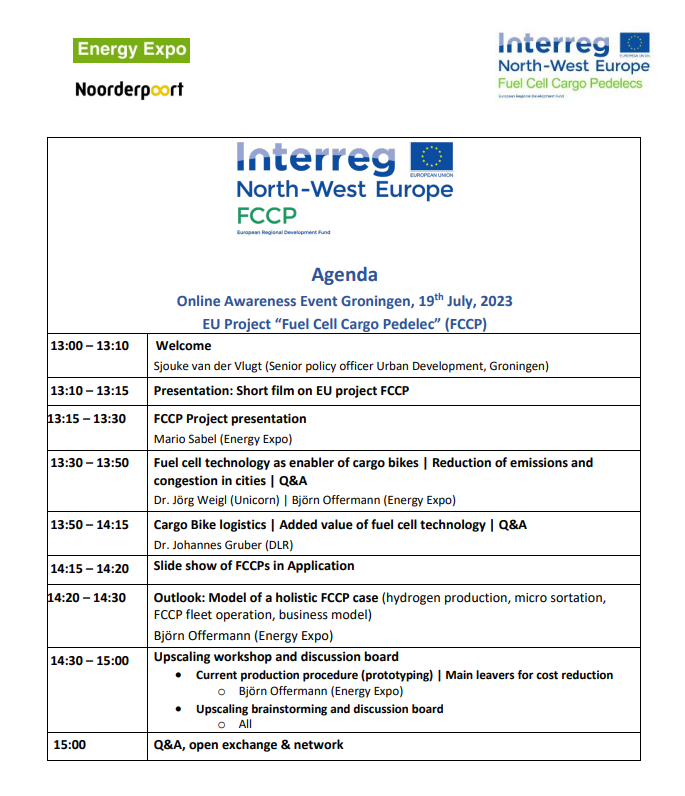 In order to save emissions and your time, we decided to make an compressed online awareness event about zero-emission fuel cell cargo bikes (FCCPs). Together with Sjouke