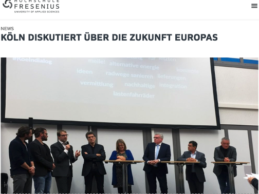Under the title "Cologne discussing the future of Europe" FCCP was presented at the University Fresenius in Cologne by Björn Offermann and Fabian Halft (Unicorn, project partner) as part of the discussion forum. Also in the panel, representatives from the city of Cologne, economy, politics and science.
