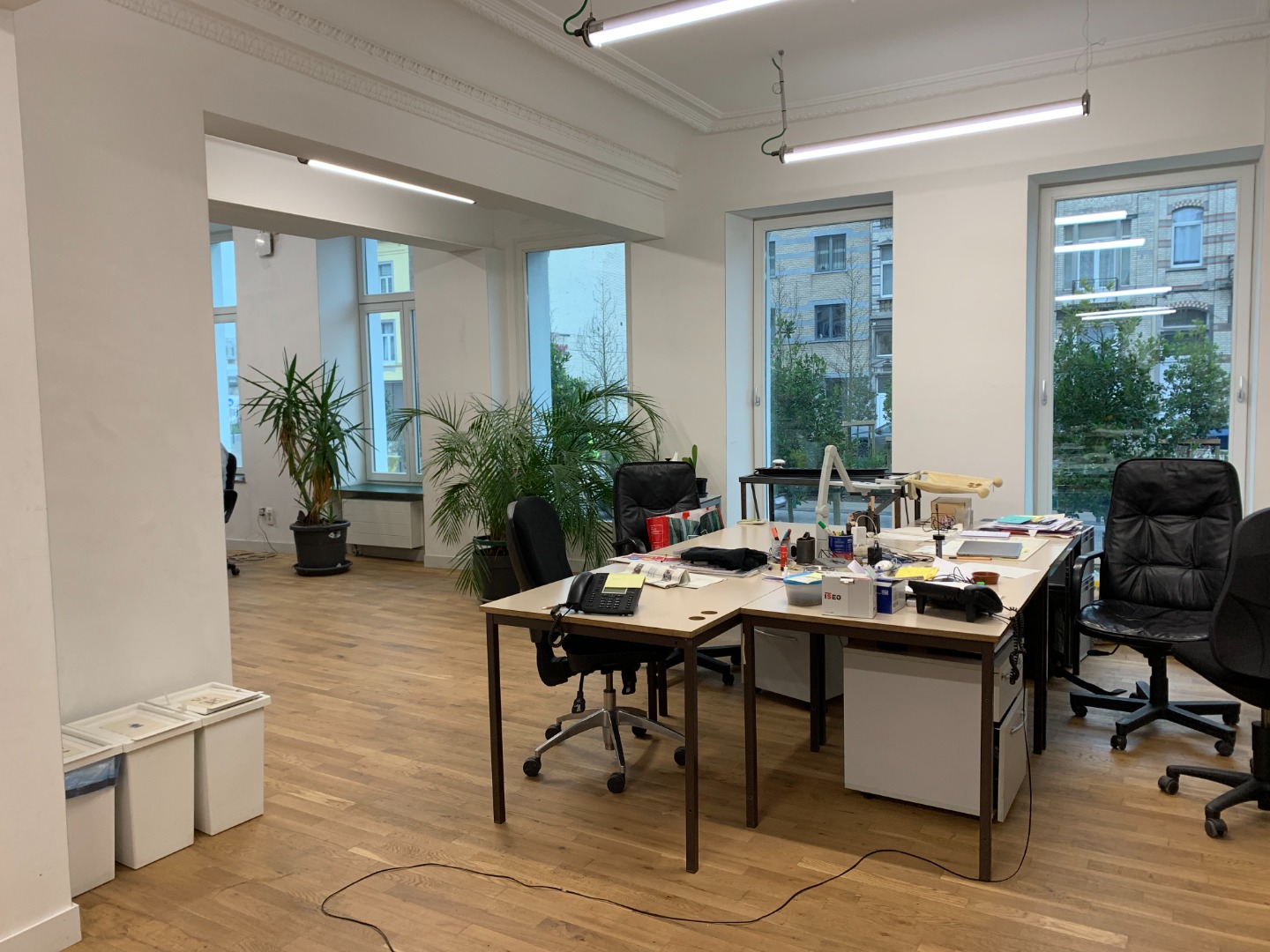 - In this same building, which was originally 2 typical Brussels houses, the floor is based on recovered parquet, part of the furniture comes from recovery as well as the main door and the fireplace. The white interior staircases are not reused because the work is too precise. Note that the solid oak floor has encountered some difficulties for its implementation. Although much cheaper than a new floor of this quality, it took a little more time to prepare for reuse upstream because in general the new is directly ready to use.