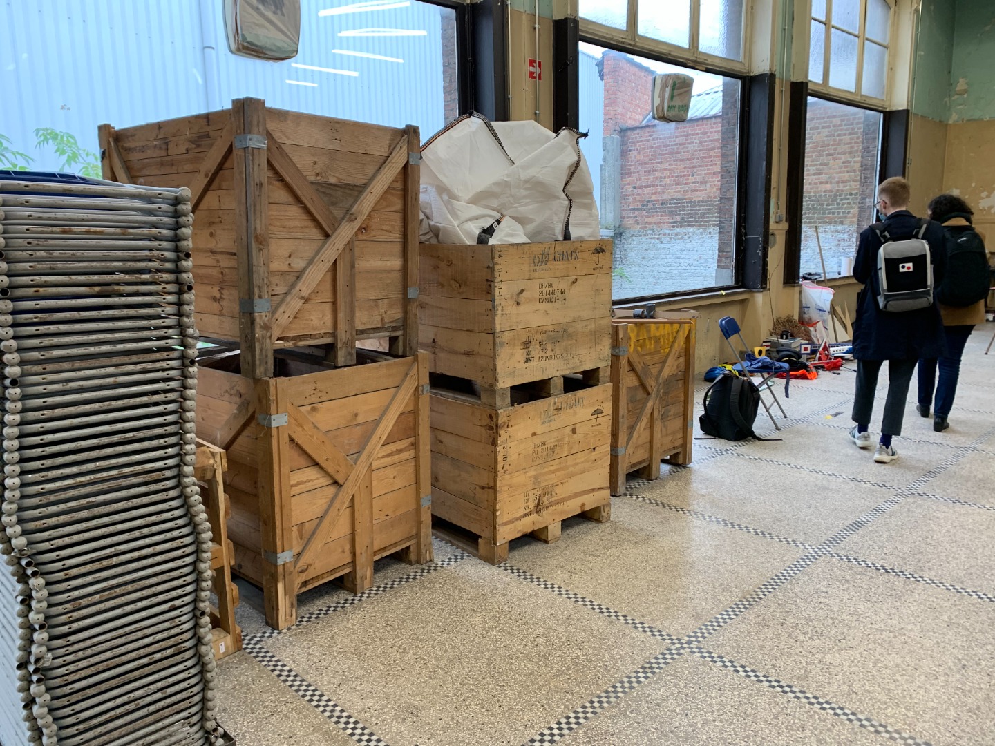 Solicitation of the Zinneke team in the works, participants in the various workshops and trainings such as carpentry, construction workshop, etc. were asked to put their hands to work.