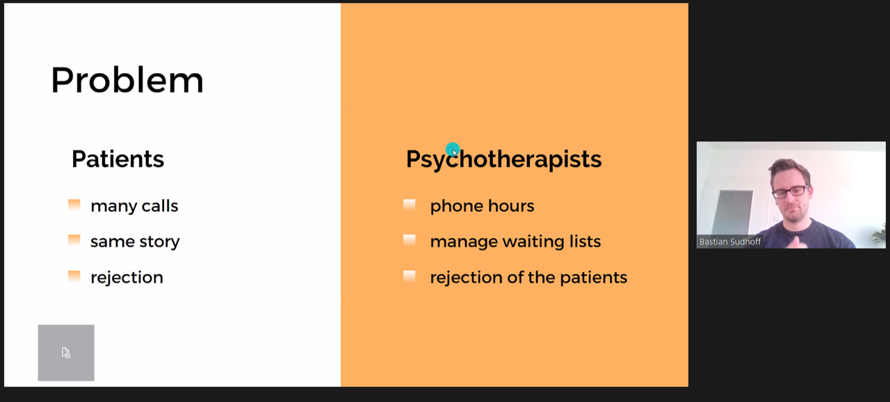 After two very insightful keynotes, the time came for each of the 8 amazing start-ups participating in the hackathon to present themselves. Minime, Elona, WellBe, Digimenz, Robomantic, PsySelect.com, Between The Lines and Mobile Brain Lab all took the stage in order to introduce their project and ideas.