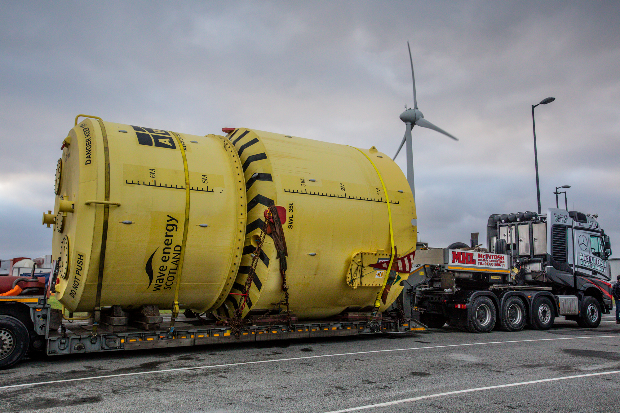 Weighing in at 50 tons, the seven-metre high, four-metre diameter device travelled to Orkney by ferry following a period of dry testing undertaken by the AWS engineering team at Muir of Ord.