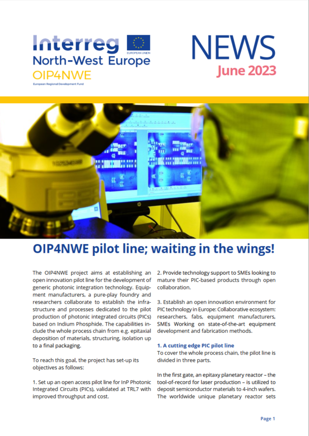 The OIP4NWE project aims at establishing an open innovation pilot line for the development of generic photonic integration technology. Equipment manufacturers, a pure-play foundry and researchers collaborate to establish the infrastructure and processes dedicated to the pilot production of photonic integrated circuits (PICs) based on Indium Phosphide. The capabilities include the whole process chain from e.g. epitaxial deposition of materials, structuring, isolation up to a final packaging.