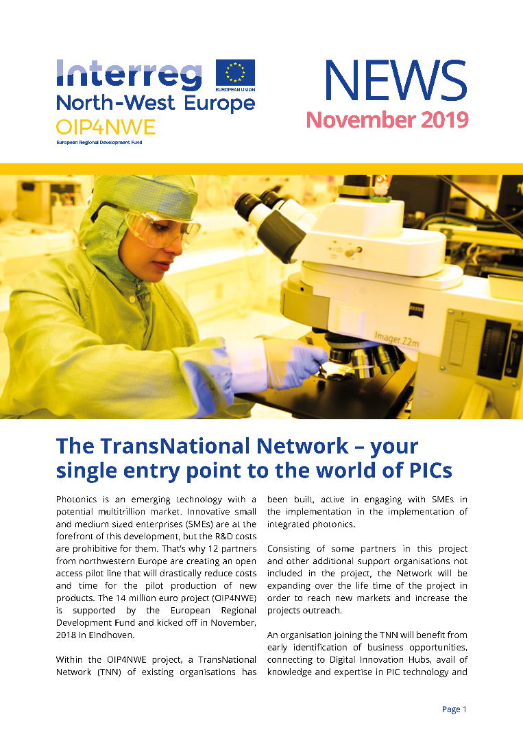 Within the OIP4NWE project, a TransNational Network (TNN) of existing organisations has been built, active in engaging with SMEs in the implementation in the implementation of integrated photonics.